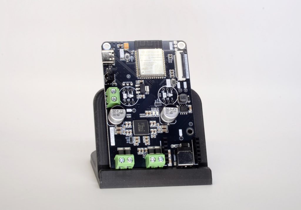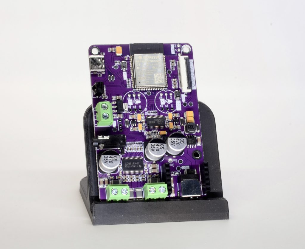 ESP32-based audio streaming development board based on dual MAX98357 DAC with speaker output for a small room or workplace.